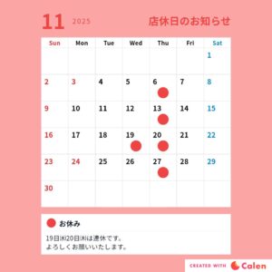 11月店休日のお知らせです。