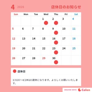 こんにちは! 3月は大変多くのお客様にご来店いただき、誠にありがとうございました。 […]