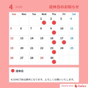 こんにちは! 3月は大変多くのお客様にご来店いただき、誠にありがとうございました。 […]